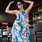 Allover Print Keyhole Back Halter Dress